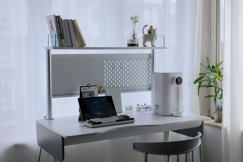 租房党的饮水新选择,免安装米家台式净饮机乐享版 ▶这款米家台式净饮机乐享版,集净化、加热于一体,不用安装,直接加水通电就能用,是一款集6级精细净化过滤的净饮机,小巧体积,不受安装的要求限制,哪里使用哪里搬,方便快捷易操作。 ▶单滤芯的设计,就可以达到六级精细过滤,还有RO反渗透技术,到手后直接通电加水就能用,自来水直接达到直饮的级别。相比小区内的净水机,更加健康放心,方便自在。 ▶滤芯的安装和更换也更简单,一插一拧就好了,滤芯寿命一年一换,玩命喝水,每天成本都不到一块钱,经济实惠。租房的家人们,再也不用顶着烈日严寒下楼打水了~ ▶还有这个纯水壶的设计,净化完毕的水可以直接拎出来,不仅有提手,还有防尘盖子和壶嘴。1L的大容量,无论冰箱冷藏还是做饭加汤,都非常实用。 ▶触控屏幕,支持多档位设置,连接米家APP后,还支持自定义出水量和温度的设置,然后推送到机器,最大化的满足不同饮品的水温要求,还能实时查看滤芯的使用状态。 ▶双色出水氛围灯,提醒水温防止烫伤,磁吸接水盒,方便清洗打理,自定义儿童锁,开关随意。有需要的家人们,快去看看吧~