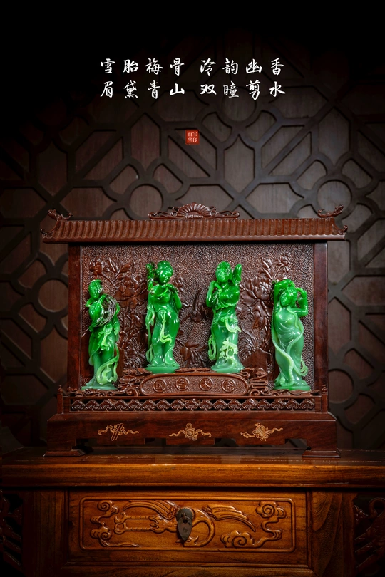 碧玉摆件《美人如玉》把美人的容姿刻画的栩栩如生,雪胎梅骨、冷韵幽香、眉黛青山、双瞳剪水正是美人的真实写照。