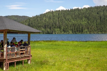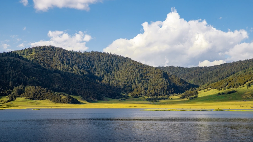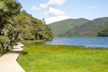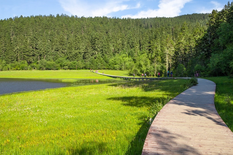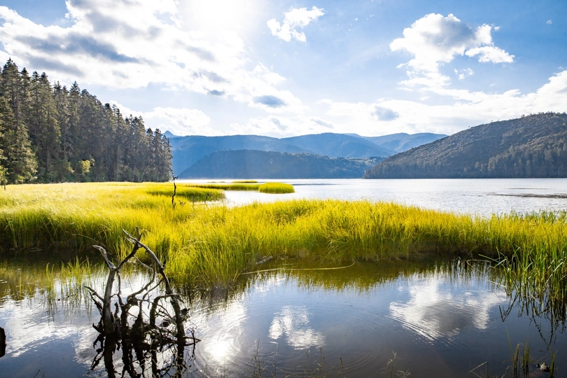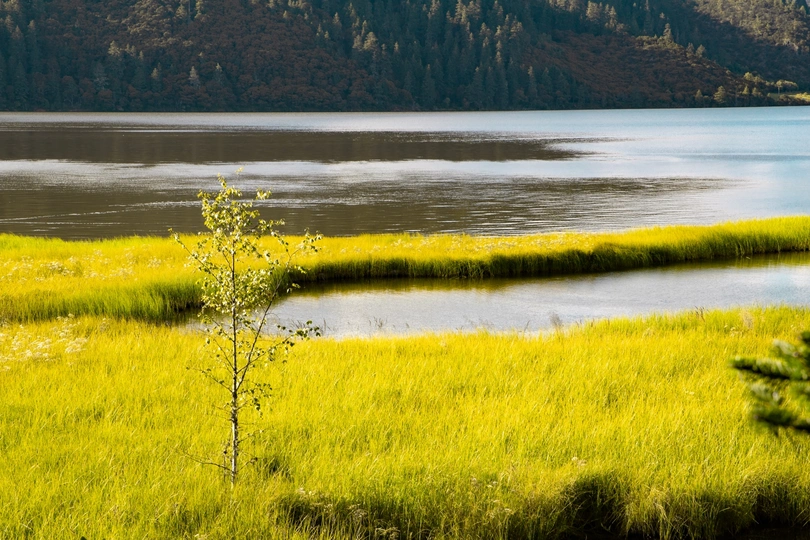 摄于云南省迪庆州香格里拉市普达措国家公园。在刚入秋季的当下,趁着天气睛阳光明媚,到普达措国家公园感受接触大自然,在阳光的照耀下,山水一色,湿地金黄,不禁感叹青山绿水就是金山银山,生态文明建设为国之大计。 #绿水青山就是金山银山# #生态文明建设#