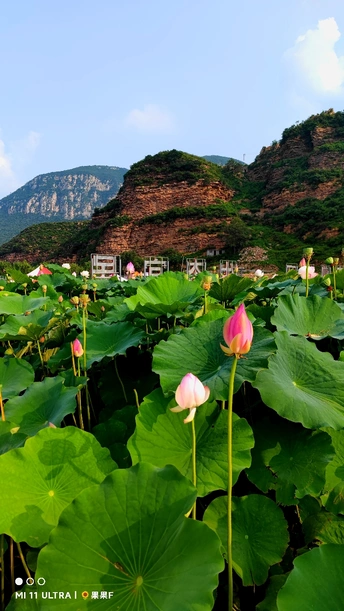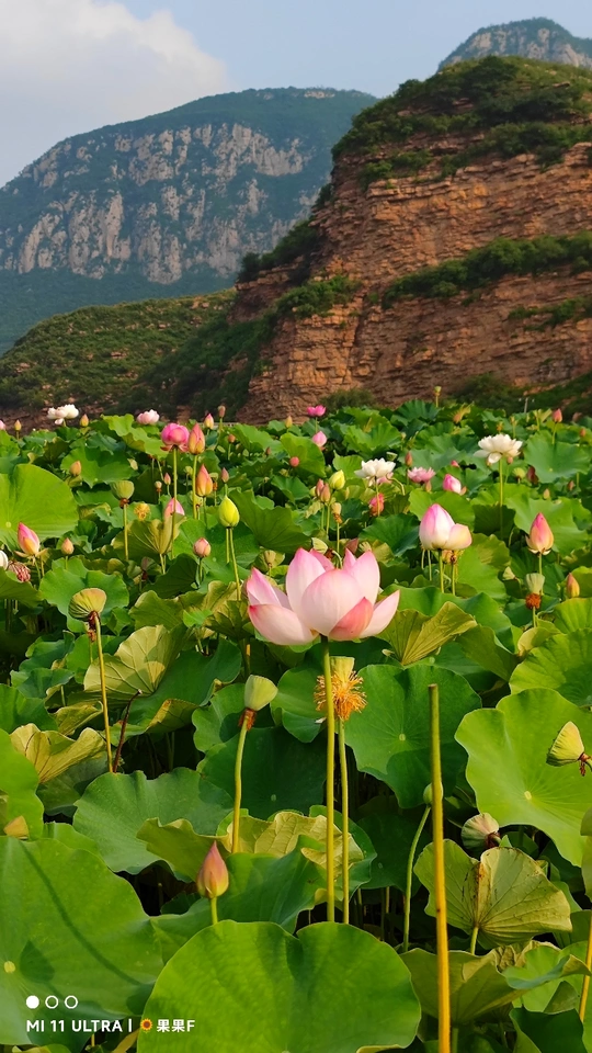 巍巍太行 沙河东沟 盛开在山脚下的荷花 是那样的鲜艳夺目 山环抱,水润泽 育孕出如此花之娇子 满眼尽是美色 美不胜出! 摄地:邢台沙河柴关东沟村 拍机:小米11ut