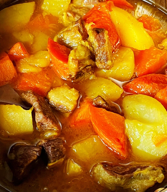 暑热未消,喝酒吃肉贴秋膘了。咖喱土豆烧牛肉永远的精典,牛肉中含有丰富的蛋白质,能帮助增强人体的免疫力,同时也具有丰富的矿物质,特别是铁元素,能帮助人体补气养血。用八两牛肉,一个胡萝卜?三个土豆,一个洋葱。一锅香喷喷的好吃到汤都不剩,这道菜盖浇饭最好吃,百吃不厌,你喜欢吗。