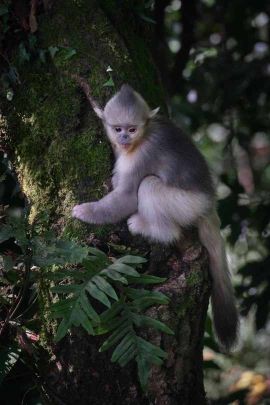 塔城香格里拉滇金丝猴国家公园的滇金丝猴一家子,幼猴的毛色是灰白的,成年后逐渐变深,唇色“色号”也越来越粉红。长松萝是它们最喜爱的食物之一,幼猴活泼极了,边吃边玩、上蹿下跳,成年猴则悠闲的细嚼慢咽,觅食后,一家子向山下移动,慢慢消失在我们的视野中。这次近距离观看了滇金丝猴,感觉猴子也有“猴品”,滇金丝猴温文尔雅,跟我们始终保持着安全距离,不像“弼马温”猕猴,又抢又挠,据说当地人说也不会偷抢农作物,真是一宝🐒
