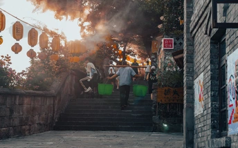 图摄于山城步道,8月11日。 棒棒,是旧时重庆人对于肩挑货物、在多山多坡多台阶的山城运送物资的苦力劳工的称呼。 随着社会的发展,码头、港口、闹市的“棒棒”越来越少。 8月11日,笔者在山城步道漫步时,偶然看见这位步履蹒跚的“棒棒”大爷,挑着两个绿色的空桶,在游人如织山城步道里一步一步向前。 汗涔涔的“棒棒”大爷与旁边观景凳上的年轻人、前方惬意的游客形成了鲜明的对比。大爷既显得格格不入,又显得与古老的步道浑然一体。
