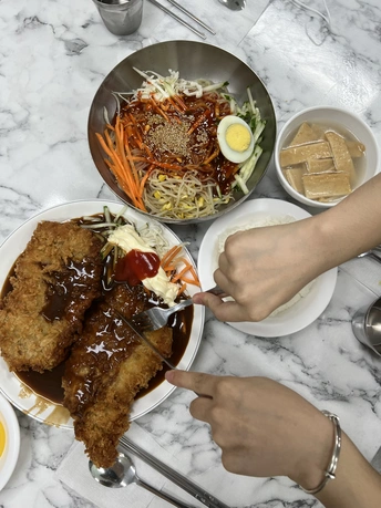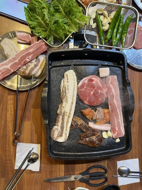 韩国吃最多的就是烤肉啦~最好吃的确实是济州岛的黑猪,随便进去的一家店,很好吃(图6),图8是学校食堂的饭,确实不好吃哈哈哈,79是韩国的中餐店,分别是首尔大林的羊肉串No.1和济州的小北京自助火锅。