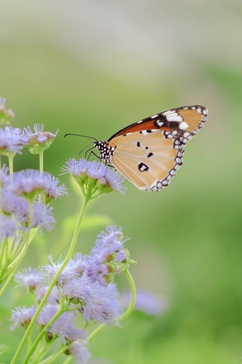 金斑蝶属于斑蝶科,它的翅红褐色,前翅前缘及端部黑褐色,靠近顶角横列4个大白斑,附近还有几个小白斑,外缘有不规则的小白斑排成一列。后翅外缘有黑褐色带,其中有白色小斑点分布;中室端部有3个黑褐色斑点;雄的在Cu2脉近基部处另有黑褐色斑,即其香鳞区。反面图案和正面相同,但前翅顶角黄褐色,雄发香鳞斑中间白色。