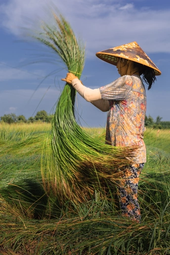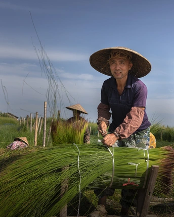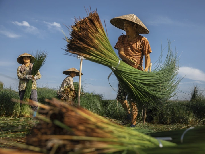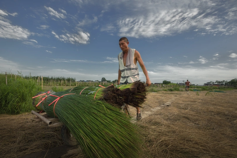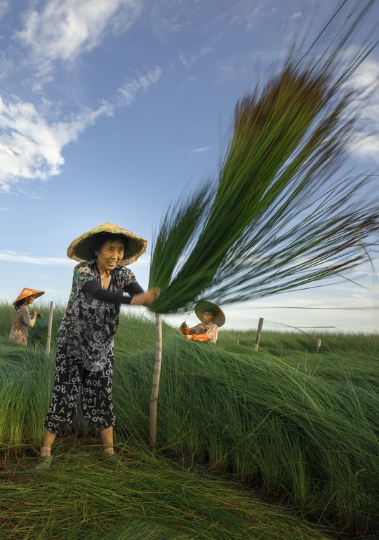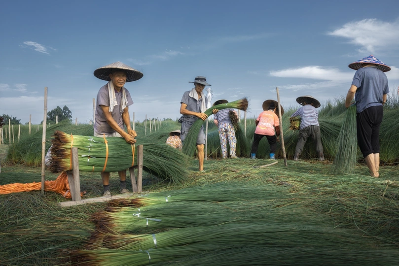 蔺草被誉为“绿色钻石”,是用于编草帽、凉席的优质原材料,眉山一带因具备了土壤肥沃、光照充足等诸多满足蔺草生长的有利条件,种植了大量的蔺草。蔺草收割的季节,“蔺草客”们就会不约而同地相聚于此,与时间赛跑,收割蔺草。