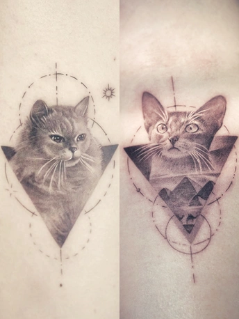 家里有两只可爱的毛孩子,我们真的把它们当做自己的孩子一样,一直在想怎么才可以让它们陪伴我们一辈子,最终选定了纹身这种形式,把它们纹在身上时刻陪伴我们