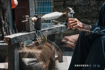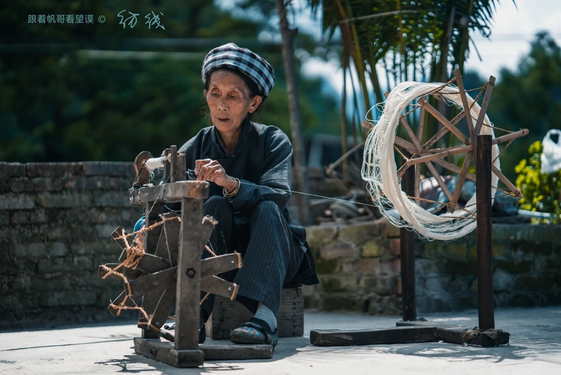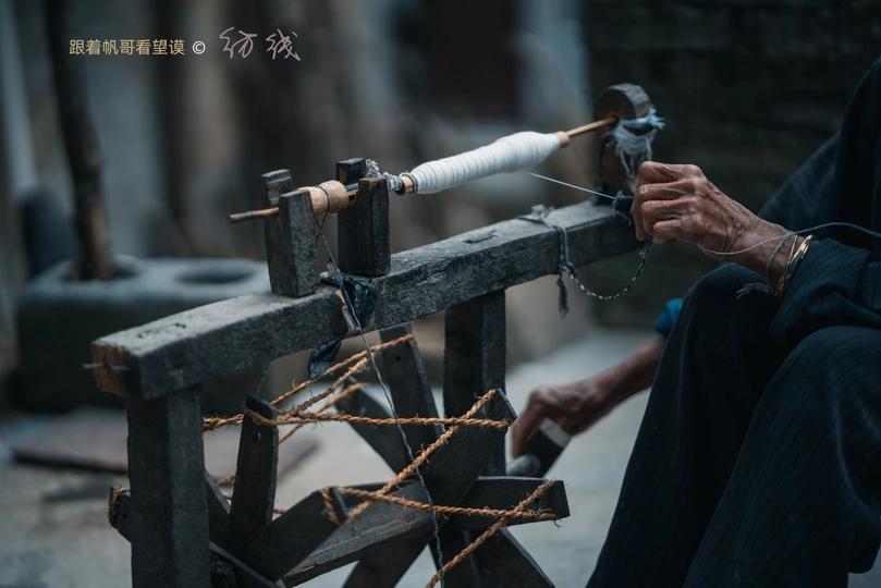 竹轮轻转,银梭渐满,棉线悠长。一台古老的纺线车,老人坐在纺线车旁,摇着竹轮转,捏着棉条的手优雅地一扬,棉条就变成了细细的棉线,缠入线锭上。 摇轮不息,纺车嗡嗡,银丝绵长。古老纺线车没有休停,老人用她灵巧的双手,为她的后人营造着温暖,编织着秀美,伴着竹轮运转的和声,是布依织女低声地吟唱。 拍摄于贵州省黔西南州望谟县乐旺镇懂木村。