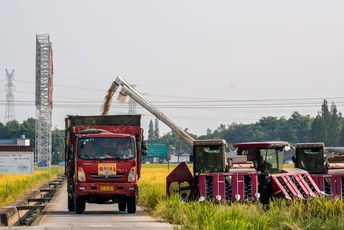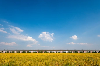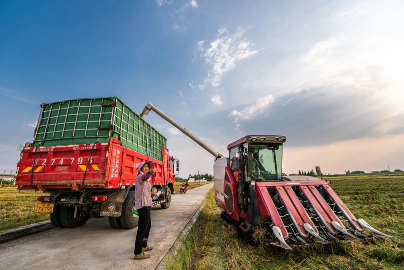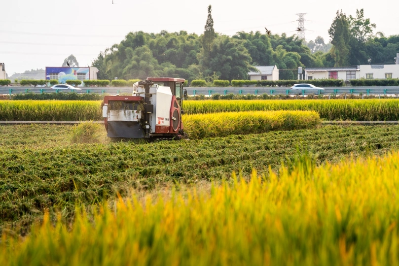 天府之国是我国水稻的主产区之一,这里也是水稻育苗和品种培养的实验基地。处暑后,水稻进入大规模收割期,农民伯伯顶着烈日和高温在秋雨到来前抢收水稻。2022年的丰收节也在成都举办,我来到眉山市永丰村的千亩水稻实验田和摄影好友记录下这丰收的场景。