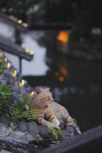 悠闲的古镇,悠闲的猫