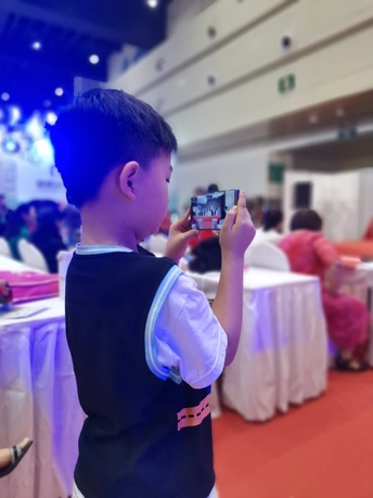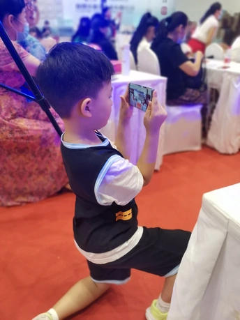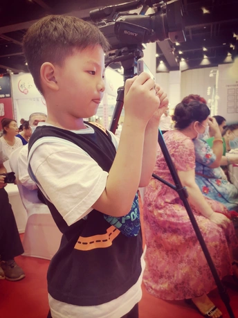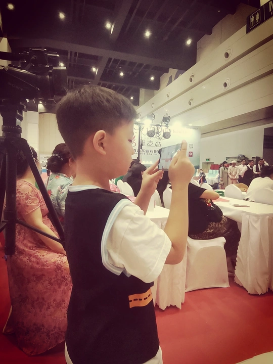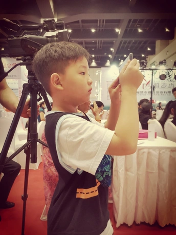 受朋友之邀,为他们演出的节目录制小视频。 节目进行中,我突然发现左侧走道上多了一位小朋友,正在非常认真的用手机录视频。我可挡不住这种诱惑,调转手机对准他,但还是要征得一下他的意见。“可以给你拍照吗?”。他目不转睛的轻轻点点头表示同意,丝毫不影响他的拍摄。这架势不用多做解释,俨然一副摄影师的派头。他如果把他的摄影作品也放在米拍平台上展示,相信未来也是一位很棒的摄影师。