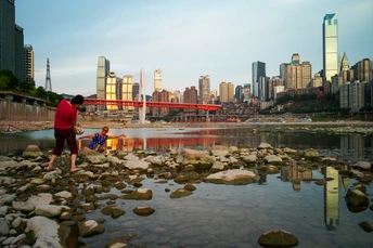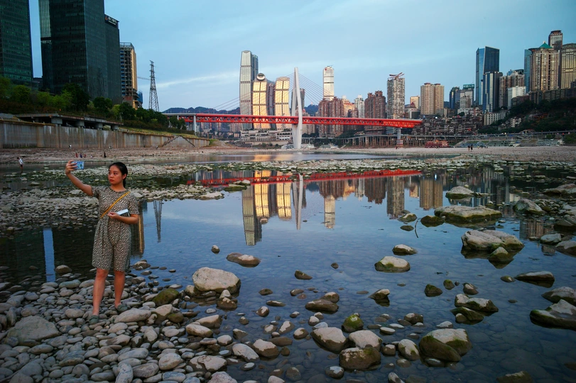 大家都知道,前段时间重庆经历了罕见的持续高温天气,还引发了河流干涸、山火、供电紧缺等状况。不过这一切困难,不但没有压倒重庆人民,反而使不畏艰难、团结一心、积极乐观的重庆精神表现得淋漓尽致。图中,嘉陵江的水位降低,市民趁此机会来到江边“打卡”。这,就是重庆人乐天精神的一个写照。