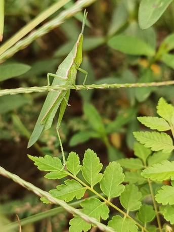 今天画完原画,出去放松的时候抓拍的一只蚂蚱搞笑的瞬间照片,一直蹬着后腿,半天上不去那个草头。??