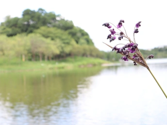 在中心湖的岸边看见很多紫色的花朵,很显眼、别致、有个性,于是拍一拍。