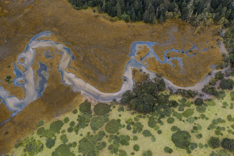 在气候湿润的地区,河水挟带着泥沙汇入湖泊,因为水面的突然变宽,水流速度减慢,携带泥沙的能力减弱,泥沙便在湖边沉积下来,形成浅滩。还有一些微小的物质,随着水流漂到湖泊宽广处,沉积到湖底。随着时间的推移,湖泊变得越来越浅。并且在湖水深浅的不同位置,各种水生植物逐渐繁殖起来。受天气等因素影响,在大地上形成了各种各样的色彩!!