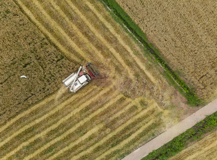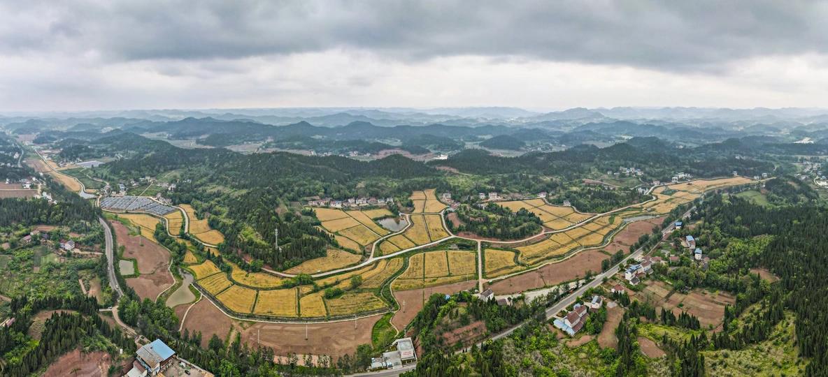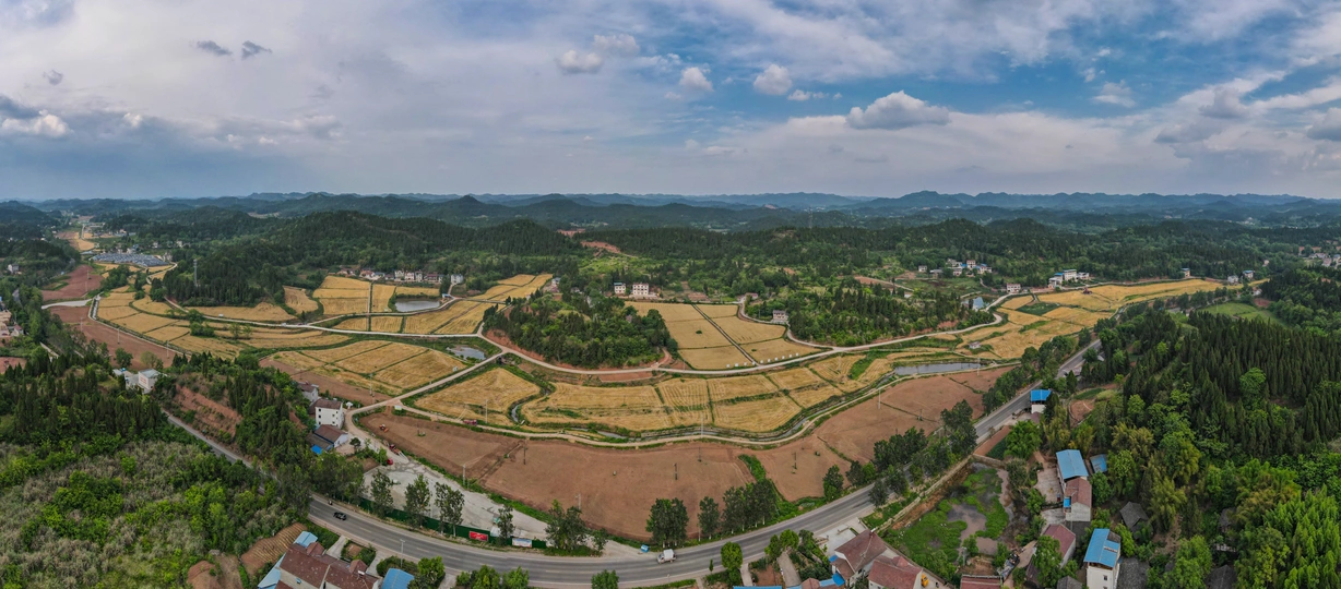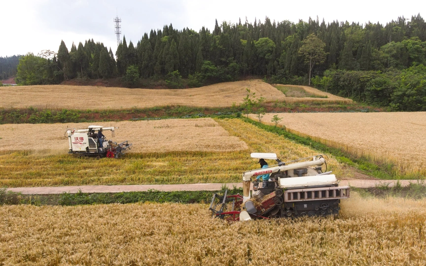 2021年5月,永兴镇新开村的块块小麦地里,几台收割机来回穿梭,一派繁忙景象。几个月前,这里还是一片空闲土地。四川天穗农业集团有限公司将村里的700余亩空闲土地流转过来,一番除草、旋耕平整、深松作业之后,达到了播种条件。将其中400亩地种上了渝麦17号优质小麦。期间,育苗、施肥、管理、收割等各个环节精心管理,5月喜获丰收,每亩产量突破了500斤。 图片1,收割前全景图 图片2,收割后全景图