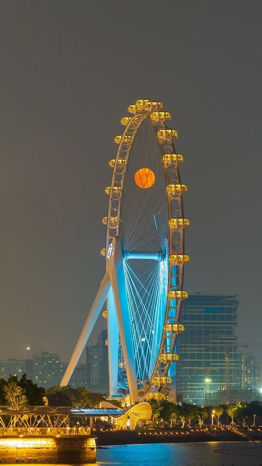 月亮从摩天轮升起,在摩天轮里赏月一定特别烂漫