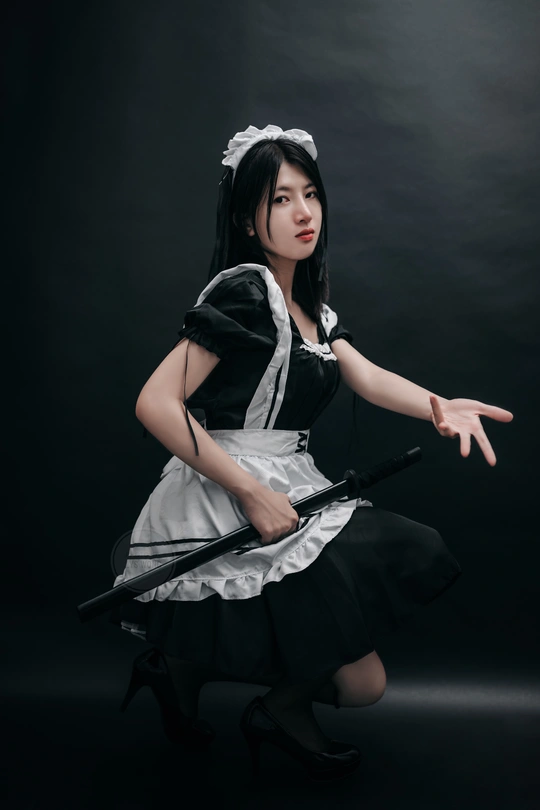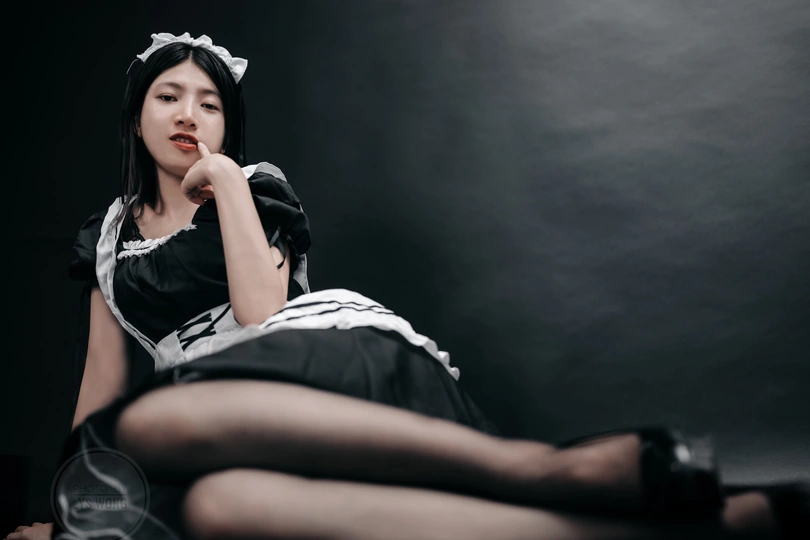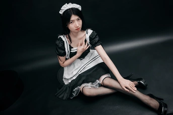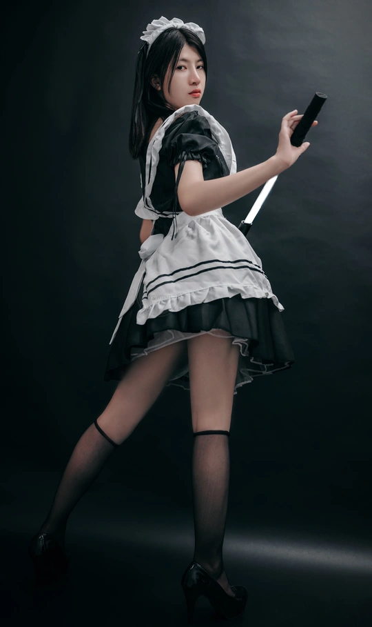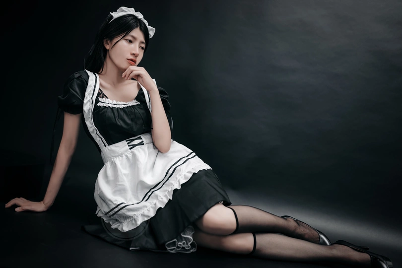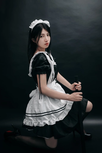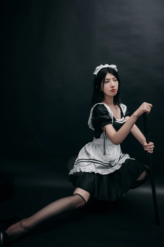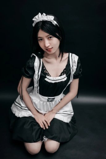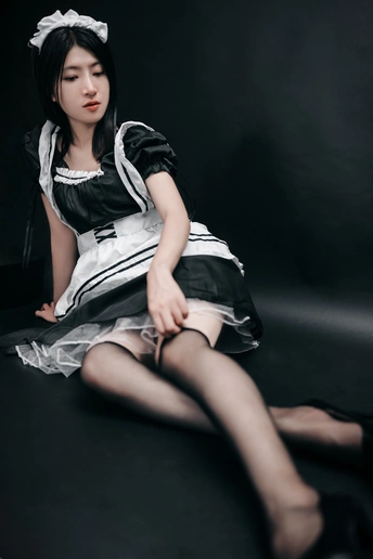 黑背景,黑丝,女仆装。[喜欢][喜欢]