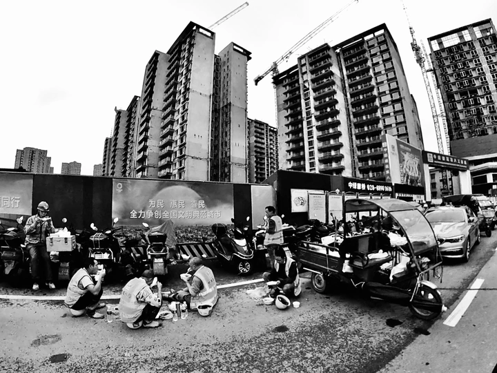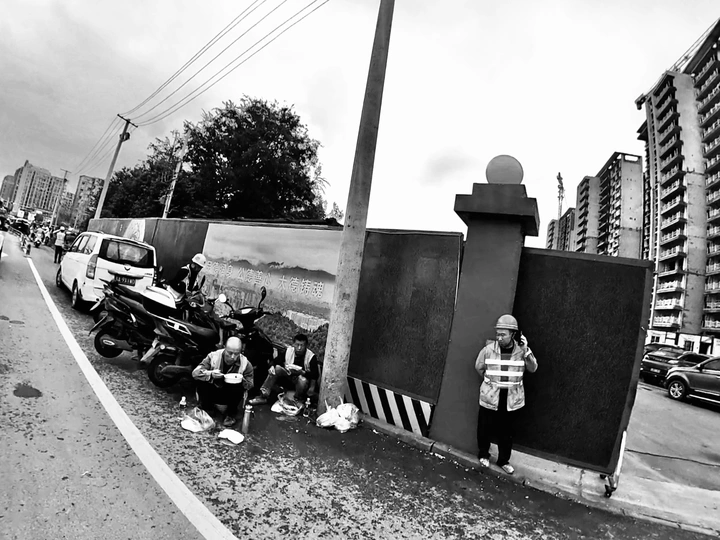 骑行路过一工地,时值午餐时间,劳动者们正在用餐。 —————— 拍照片的一种意义就是在于对瞬时的捕捉,其趣味性也在于此,有时候会遗憾没有抓住那一瞬间,有时候又会惊喜意外保存了那一瞬间。