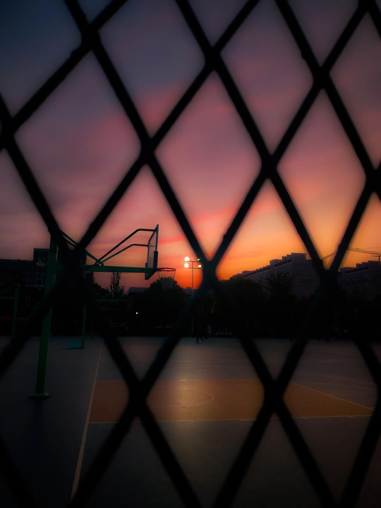 篮球场上晚霞
