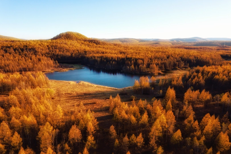 睛朗万里无云的天空,清爽的空气,金黃色的枯叶,秋天来了!