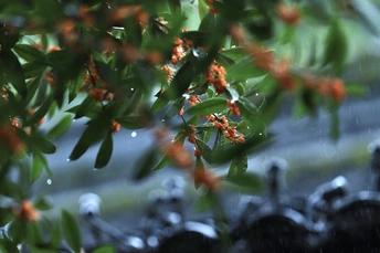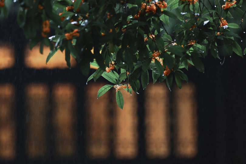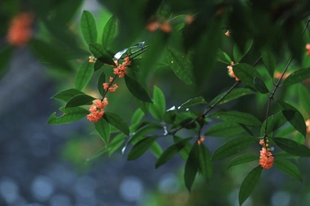一片秋光爽气新,花枝摇曳启灵椿。 风前郁郁香初透,月下沈沈味更醇。