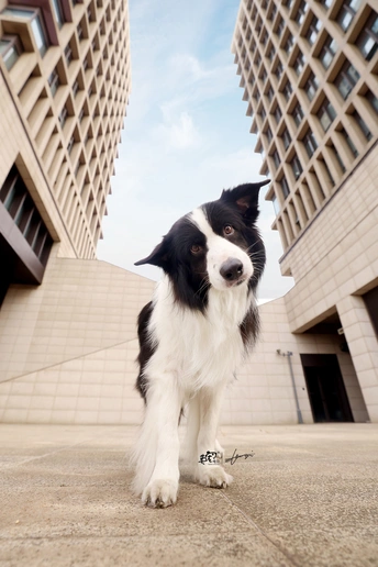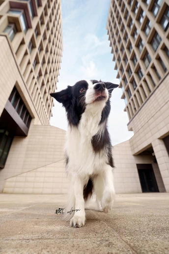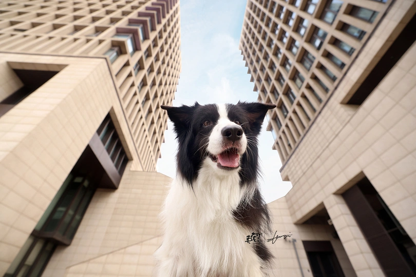 最燃建筑看起来很硬核 但边牧的好奇与笑容中和了这种钢铁的感觉? 真的是几何构图的良好示范啊~?