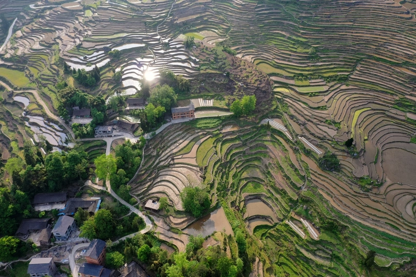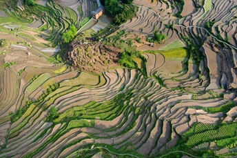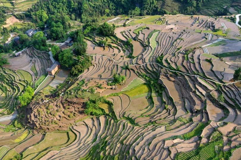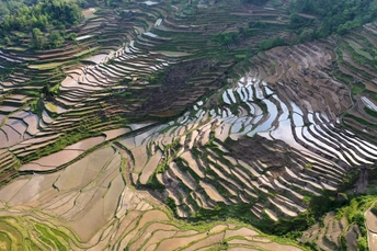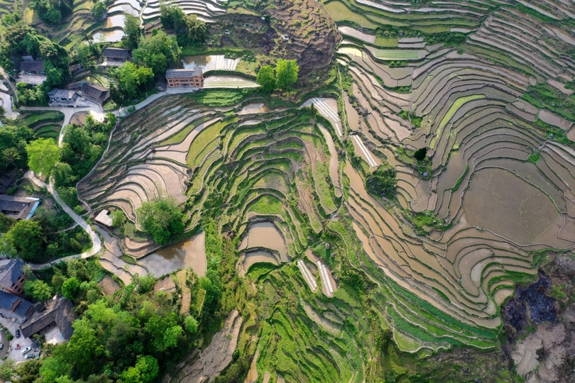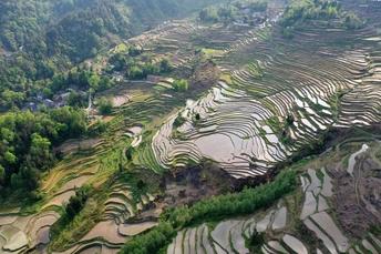 武陵山深处的酉阳,山青水秀,环境优美。花田乡何家岩梯田,就座落在这深山老林里。爬坡而上,顺山而下,那鳞次栉比,错落有致,蜿蜒曲折,大小不一,层层叠叠的梯田,让人目不暇接,心潮澎湃,流连忘返。