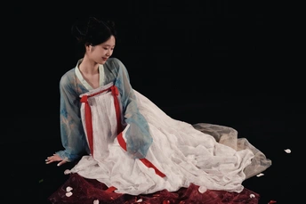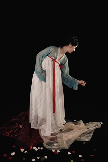 当道具不够时,用黑色幕布留白也是一种凸显服装的方式。
