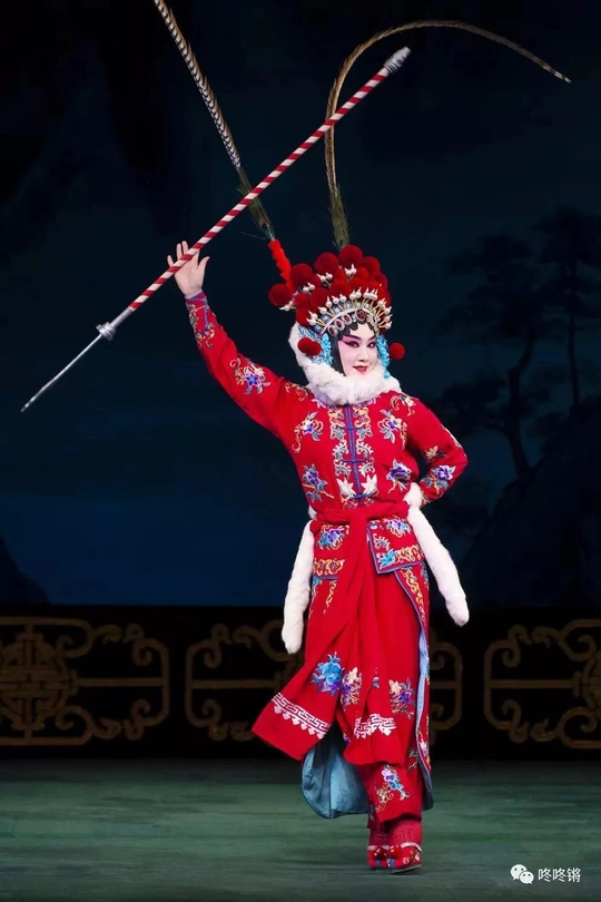陈艺心 饰 九尾玄狐 2016年3月13日(下午) 北京长安大戏院 这张表现的是舞台人物的情绪,同时它又是一个动态的瞬间。动态是靠演员手上的刀来体现的(如果是静态的瞬间,刀不可能在手上立着),这拍法追求的是意境,或许比直白的“动态”更耐看。更为主要的一点,动态也在为表现角色情绪而服务,与情绪的外化是有关联的。