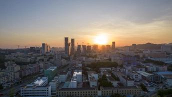 太阳升起航拍深圳龙岗宝龙建筑