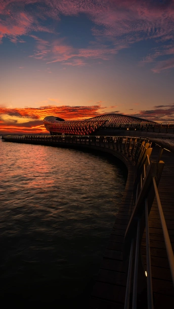 晚霞映照下的东太湖音乐喷泉,犹如腾飞的巨龙…