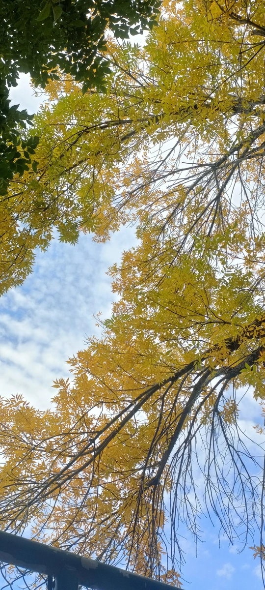 “天容云意写秋光,木叶半青黄”