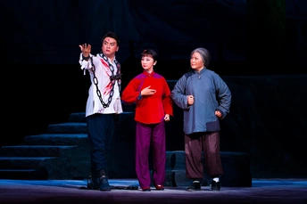 张浩洋 饰 李玉和、张译心 饰 李铁梅、毕小洋 饰 李奶奶 2015年7月19日(下午) 北京梅兰芳大剧院 准确表现舞台人物情绪和形体动作,每个人的状态都要精准到位,三个人物在一起就是完美的“群像”,情绪也可以叠加在一起,更具视觉感染力。