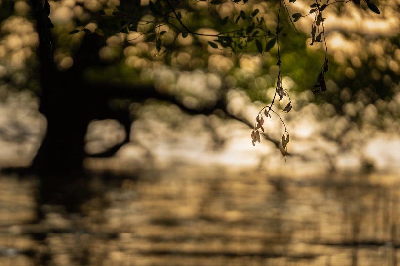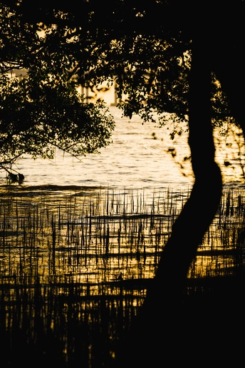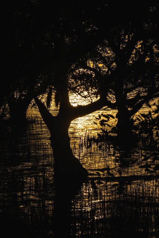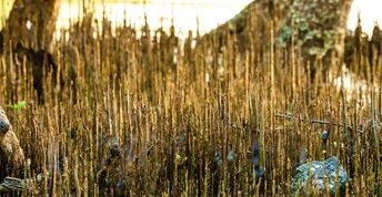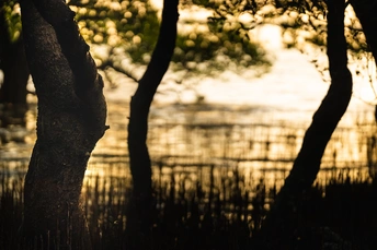 婆婆的湿地公园在夕阳的余晖下舞动起来
