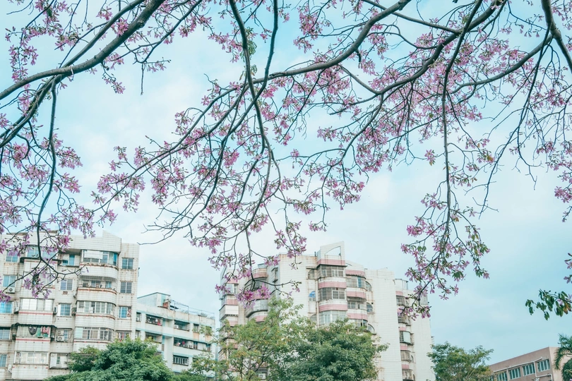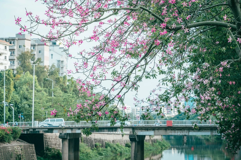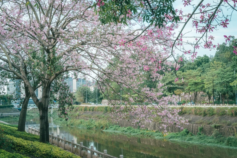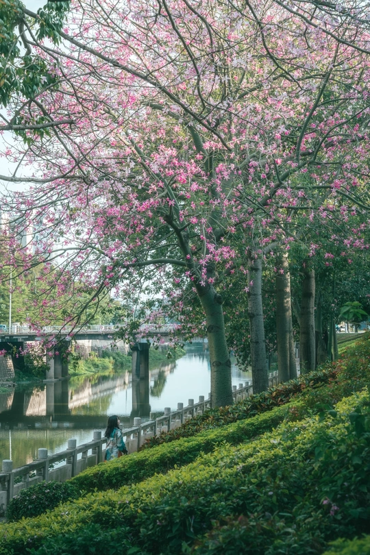 秋色不止是金色和红色,在南方,还可以是粉色,江门天沙河畔日系粉色花主题,犹如小鸭川。
