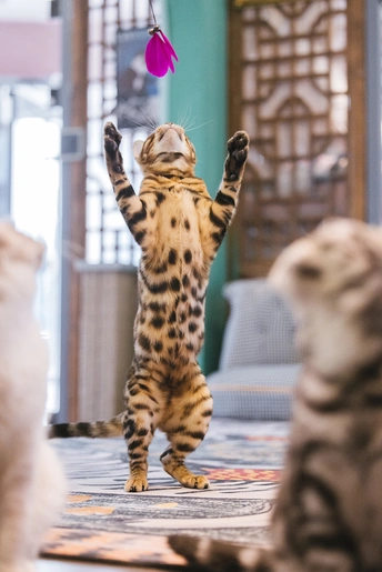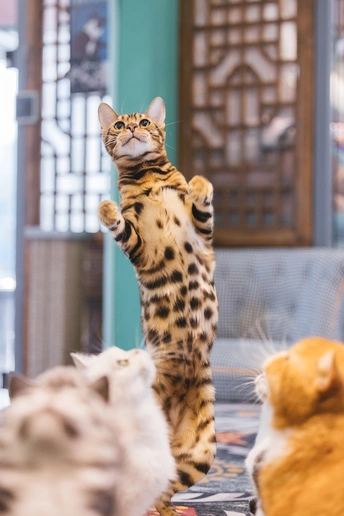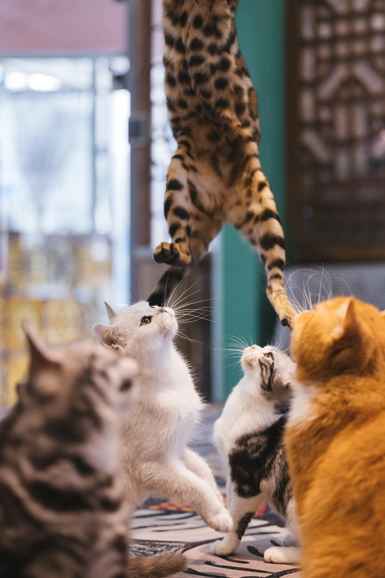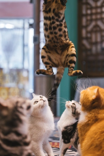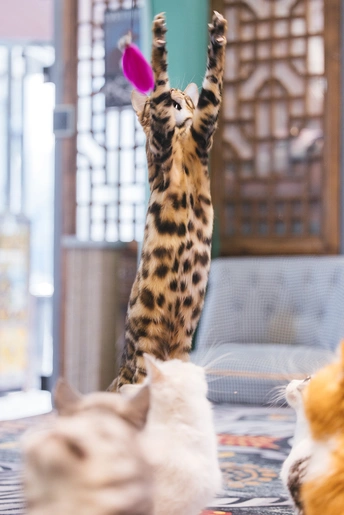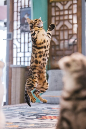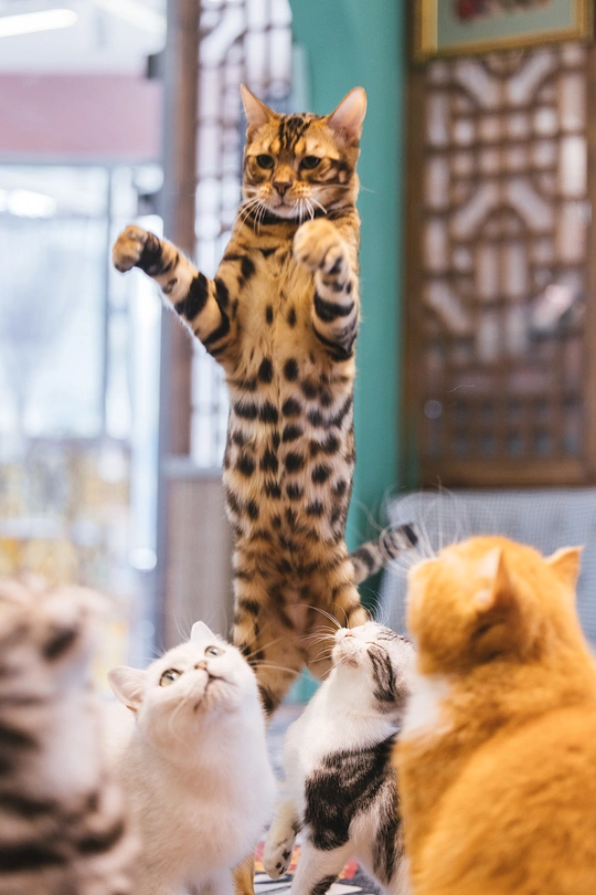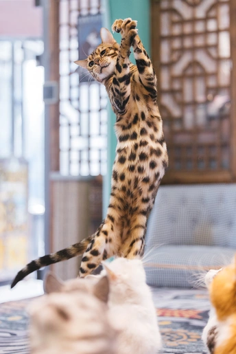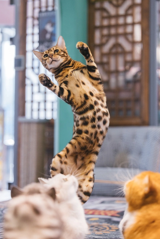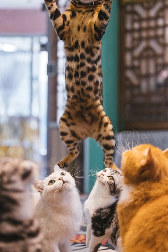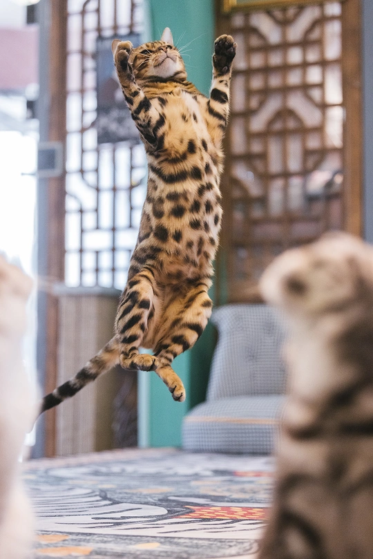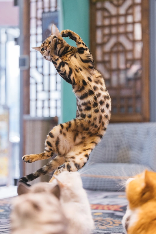 在孟加拉豹猫的弹跳力面前,其他小可爱们只能眼巴巴的仰望。