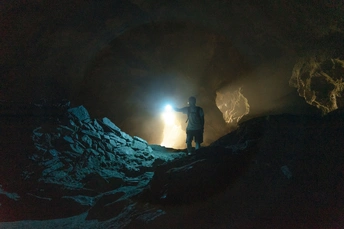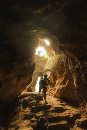 韭园酱菜古溶洞.探索未知的秘密 位置:北京市门头沟王平镇韭园酱菜附近 交通:地铁+公交 六号线苹果园地铁站换乘M22/929等。 路线:公交下车后,往韭园酱菜方向行进,分叉路口向左走,一直往前走,经过一个桥洞,再走五十米左右,左手边有个禁止爬山的标识,顺着陡坡爬上去顺着小路一直走,有铁护栏阻挡,钻过去就行,一直向上大概二十分钟左右就到溶洞了。 溶洞温差比较大,建议携带厚衣服,光线特别差,手机灯光起不到什么作用,建议头顶灯。 鞋子一定要穿防滑的,里面有些石头很光滑。 建议多人同行。