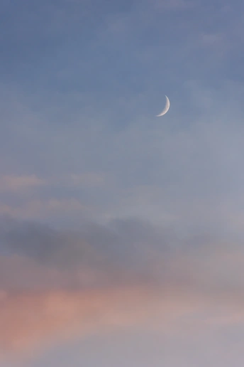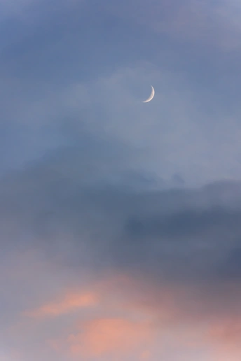 农历九十月交替之时,天空的新月残月与云霞相伴