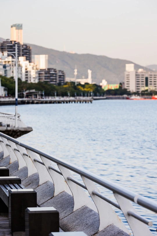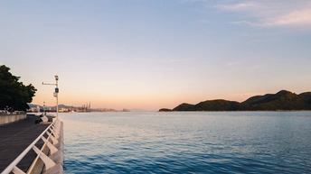 傍晚来到盐田中央公园海边慢慢,随着日落海边的风光也变幻着色彩