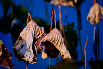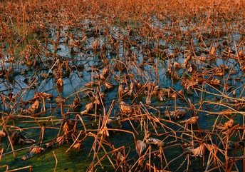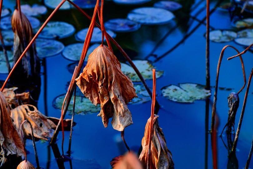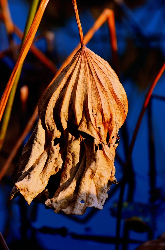 落日残荷荡秋风,枯荣无常禅意浓。 (还是那一方荷塘,盛夏时花开绚烂,秋风中残枝萧瑟,生命无常,禅意深深……)