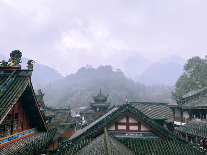 11.6泰安古寺印象,在成都暮色中,远山烟雨空蒙,登高望远,亭台楼阁层层叠叠,让人想到一句古诗:南朝四百八十寺,多少楼台烟雨中。不管晴天雨天,都有各自的美。