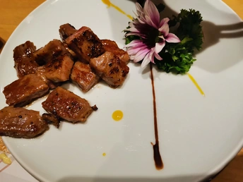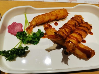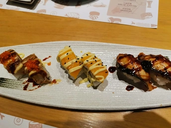 甄花精致料理自助位于青岛西海岸新区城市阳台景区,离大海只有一二百米的距离,让你体验吹着海风吃着料理的感觉。 可以先去海边走一走,阳光、沙滩、海浪以及远眺一下北方第一高岛灵山岛,一定会让自己心情大好。 店里环境优雅,室内装修比较简洁,这样反而让人倍感舒服,如同在家里就餐。 服务员穿梭其中,微笑服务,热情周到,有什么需要招呼一声就行。 法式煎鹅肝,吃起来软软的,特别可口。 火焰雪花牛排,牛排比较嫩,吃起来唇齿留香,造型还特别好看。 柠檬汁煎大虾,海鲜本身的味道被柠檬中和,口感特别好。 深海加吉鱼,肉很多,闻起来很香,吃起来很棒。 上面是特色菜品,值得推荐!但是法式煎鹅肝、蒲烧鳗鱼和火焰雪花牛排限制数量,每个人只能分一次。 鳗鱼手握、寿司卷拼盘等也值得推荐,寿司是自助性质,可以不限量取用。 扇贝裙边、珍味海藻等小凉菜也很爽口。 这里的日式铁板烧,各种炸、煮、烤物随便吃,各类西点、慕斯敞开吃,各种自选饮品畅饮,多款进口网红饮品畅饮,清酒、梅子酒、啤酒畅饮,每个人228元,性价比还是比较高的。 最后再来点好吃的冰激凌,简直是完美! 停车可以到地下车库,完全不用担心
