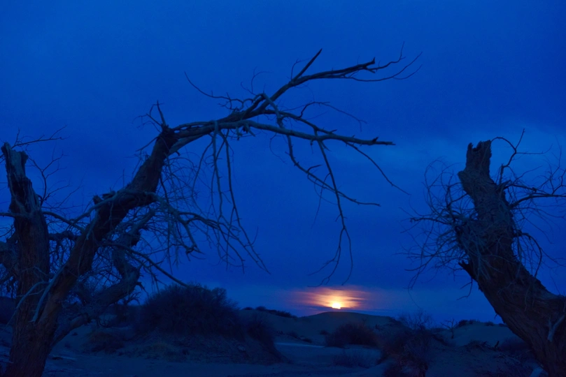 大自然神奇的魅力,不是只有太阳升起来的时候是红色的,今晨的月落时也是红色的!