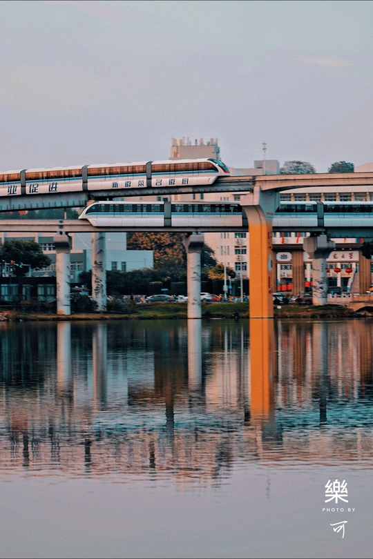 安徽师范大学门口的轻轨进出 抓拍1号线和2号线交汇瞬间