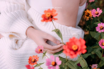 暖阳、女人与花