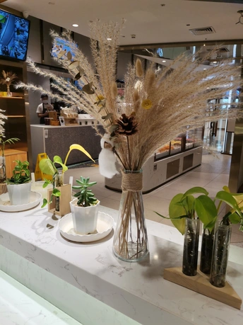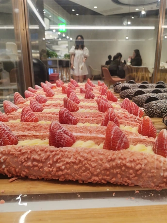 王府井步行街有很多可以逛的地方,如果逛累了,推荐你到这里来歇歇脚。 奈雪的茶(apm店)位于商场地下一层,地方比较大,灯光比较明亮,让人感觉很舒服。 座位也比较多,绿植也比较多,如同在一座小型的植物园里,可以好好休息一下。 店员服务也很热情,可以在前台点完,然后自己等着叫号,去前台取。 面包在展示柜里呈现,各种蛋糕散发着诱人的香气,能驱赶走疲惫,选完的话,可以让服务员切块。 来一杯奶茶,或者几块面包,好好地放松一下自己。
