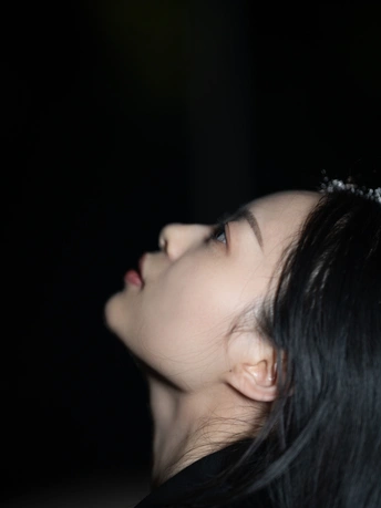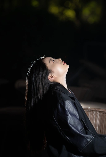 第一次见模特短时间内需要发现模特的闪光点,发现模特的侧脸,鼻子很有轮廓,头发也很顺。那么就抓住这几个点着重拍摄吧。
