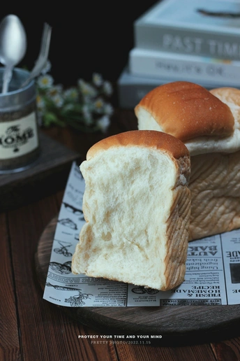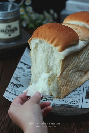 周末得空烤的绵软白吐司,用的山茶花粉,真不错