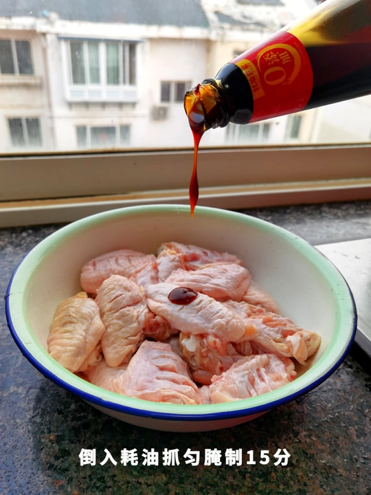 平时我们家人就爱吃红烧鸡翅,但是我血糖高就不愿吃红烧类的美食。没办法我就入手了一款日本原装的空气炸锅,不过,自从用了空气炸锅,还真是受益了,不用吃那么多的油了,看到最后一张,炸出了多少油,平时这些油吃到肚子里,血脂还能不高?这次做的这个炸鸡翅,既简单又好吃,还无油健康? 1.先把鸡翅洗干净控水,再在鸡翅上用刀划几道好入味。 2.在鸡翅上倒入耗油抓匀,腌制15~20分钟。 3.放入空气炸锅摆好,打开开关,定时,按开始键。 4.我当时定了30分钟,但是我看20分钟就好了,出锅装盘。美味的炸鸡翅就做好啦!既省时又省力还健康?